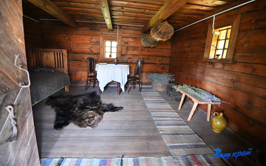 Деревянные постройки, крыши которых, как и прежде, покрыты камышом. В центре усадьбы – одноэтажный дом с крыльцом, напротив – амбар, далее – конюшня, гумно, колодец-журавль, баня. Двор обнесен забором.